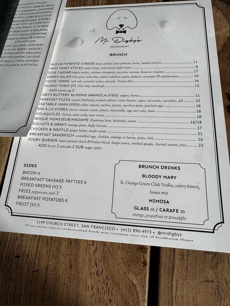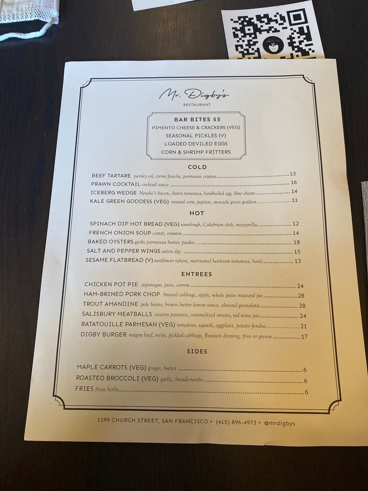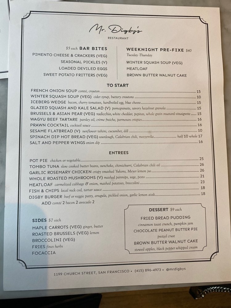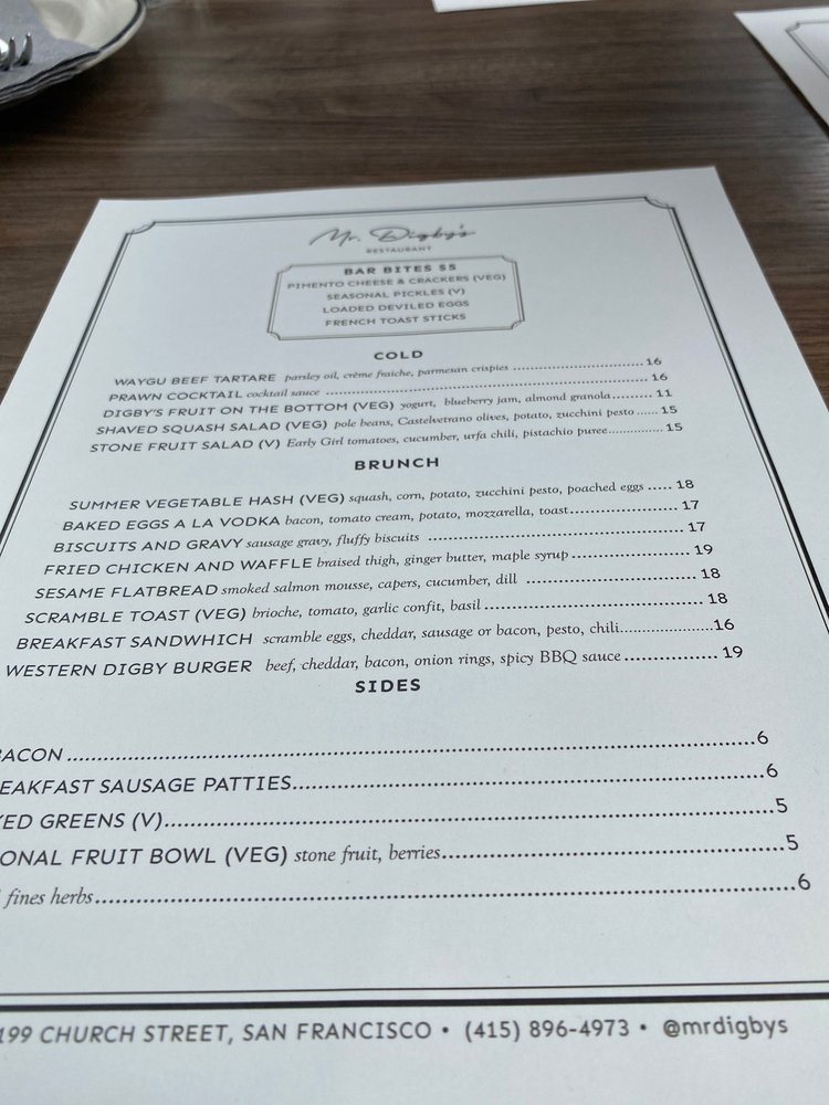 Mr. Digby’s, located in San Francisco, offers a diverse menu of comfort food, cocktail bar specialties, and breakfast options. The restaurant prides itself on providing a welcoming atmosphere with various amenities, including outdoor seating, free Wi-Fi, and happy hour specials. Customers rave about the flavorful dishes, such as the Digby Burger and Orange Chicken Wings. The unique blend of Southern and California influences shines through in their menu, with standout items like the Beef Tartare and Brunch pizzas receiving high praise. The inventive cocktail selection adds to the overall dining experience, making it a go-to spot for an enjoyable meal with friends or family. The attention to detail in both the food and service creates a memorable dining experience at Mr. Digby’s.